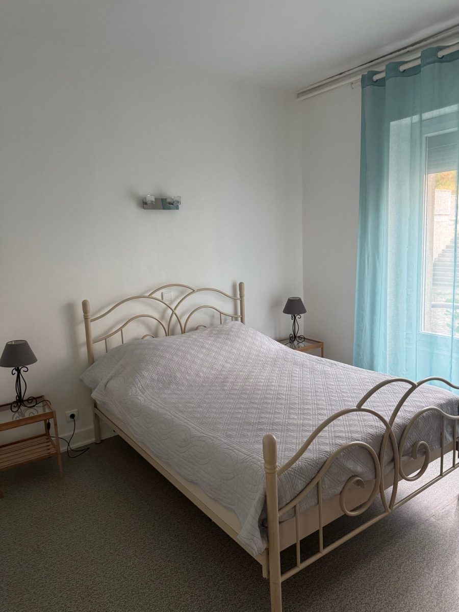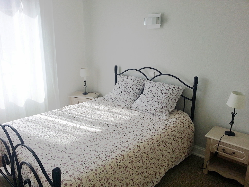 • Chambre 1 : exposition sud, lit de 140×190 avec chevets, commode et armoire, couverture, couette, couvre-lit, protège-matelas, oreillers et traversin.