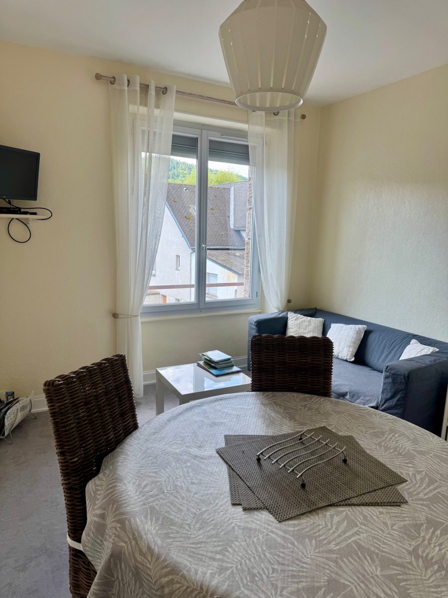 • Séjour : exposition sud, table ronde, banquette BZ, télévision satellite et radio.